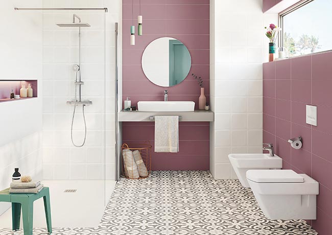As if it were a painting, dare to bring life to every corner of your bathroom. Choose colored tiles, original accessories, black faucets or basins and toilets in different finishes.