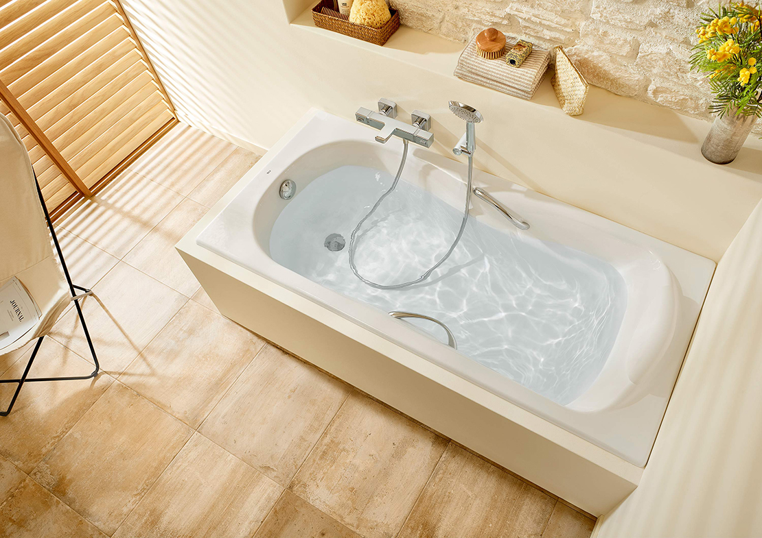 Perfectly integrated into your renovation, protected by panels or bathroom tiles, the built-in bathtubs by Roca can flawlessly fit the available space. The unique texture of acrylics shapes baths with clean lines like Easy: rectangular or angular and with or without hydromassage. With the option of including water jets, Hall adds comfortable headrests and Becool not only features practical grips, it also offers the option of having a therapeutic chromotherapy session.