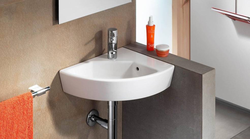 From its corner solution to the most reduced model with a depth of 320 mm, The Gap offers a selection of ingeniously compact small basins with the contrast of a narrower base and a deeper bowl.