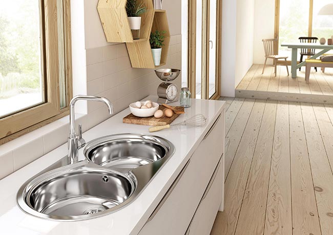 The popular metallic finish provides maximum resistance and durability in the stainless steel kitchen sinks with an array of different combinations. The most common solution in kitchen refurbishments is also the one offering a greater variety in terms of options, not only with square and rectangular bowls, but also round ones and with one or two bowls.